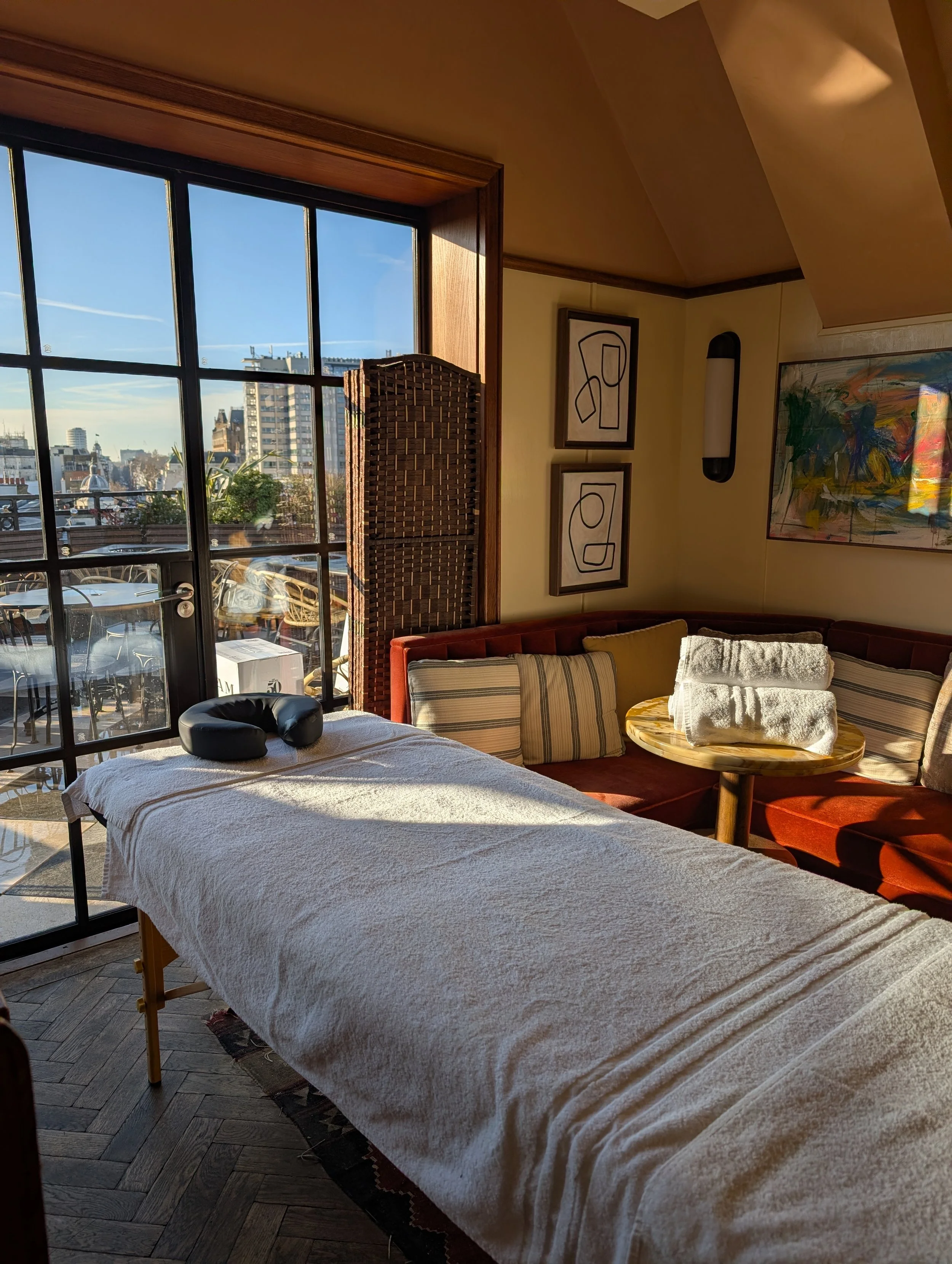 The treatment room is nestled into a charming and tranquil rooftop space.
